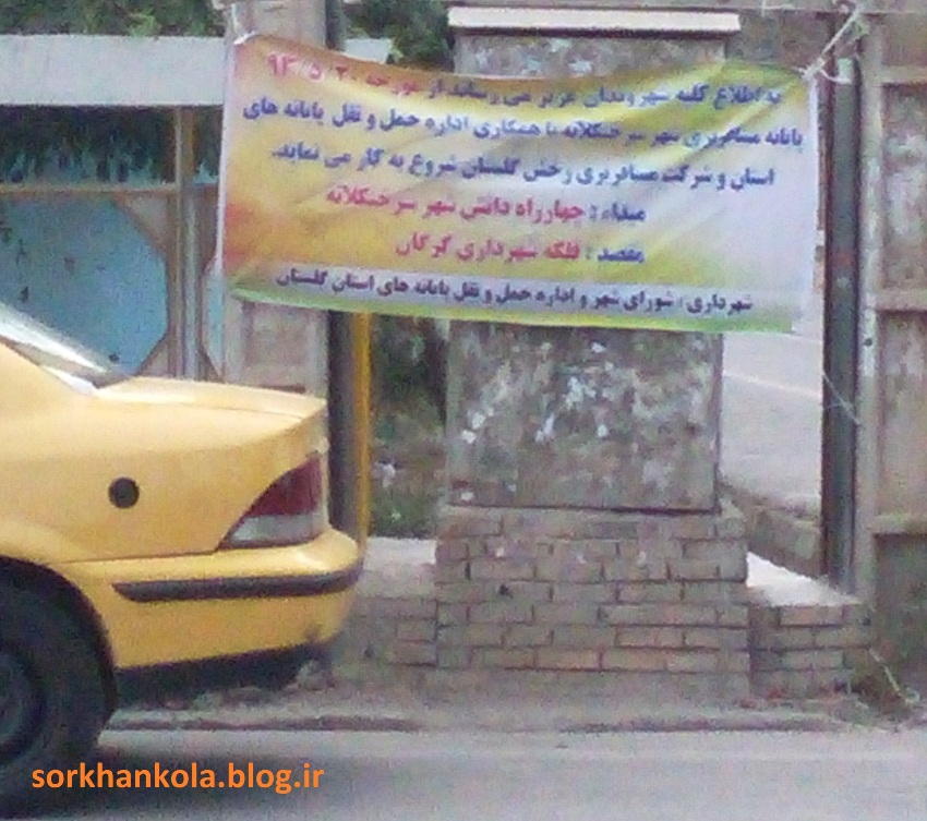اما مشکل به همین جا ختم نشد. اوایل همین هفته بود که اطلاعیه هایی در سطح شهر و خیابان اصلی نصب شد که حکایت از نهایی شدن طرح ساماندهی و اجرای قریب الوقوع آن از بیستم مردادماه داشت. قضیه نیز از این قرار بود که با هماهنگی مسئولین شهری اعم از شهرداری و شورای شهر و نیروی انتظامی با سازمان حمل و نقل ، پای یکی از شرکتهای مسافربری گرگان به نام «رخش گلستان» به سرخنکلا باز شد. مسیر سرخنکلا تا ایستگاه جرجان 1000 تومان و در ادامه تا میدان شهرداری گرگان با کرایه 1200 تومان.